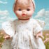 Une jolie poupée aux yeux bleus avec sa tenue printemps /été comprenant 1 robe gaze de coton écrue imprimée et son bandeau assorti