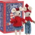 Vêtues de 2 tenues de fêtes rouges et bleues avec écharpes ainsi qu’un bonnet et un petit nœud rouge brillant , les petites souris sont prêtes pour Noël !