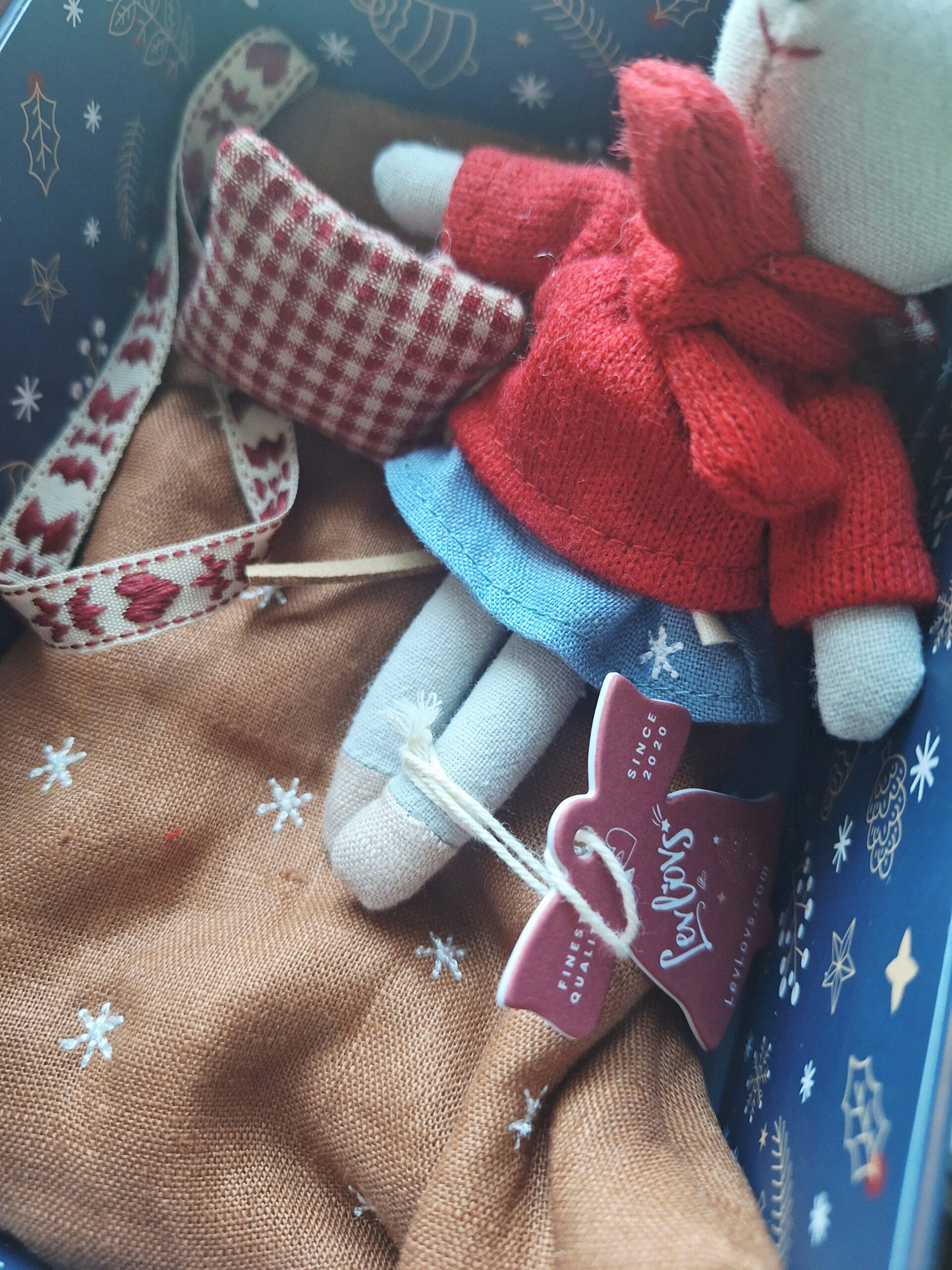 Elles sont livrés avec un matelas à carreaux rouge et blanc ainsi que 2 oreillers assortis et une jolies chaussette de Noël caramel matelassée brodée d’étoiles .