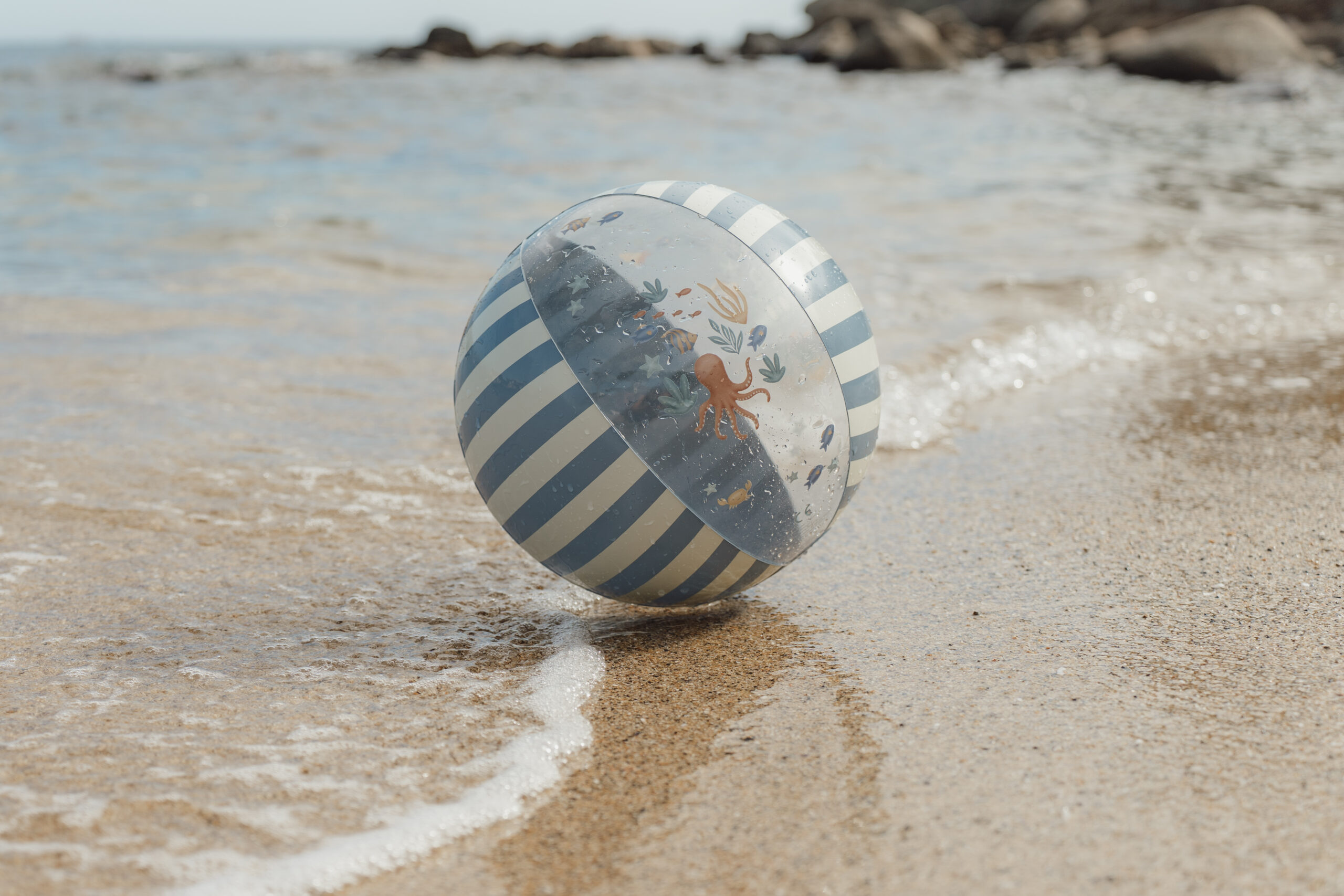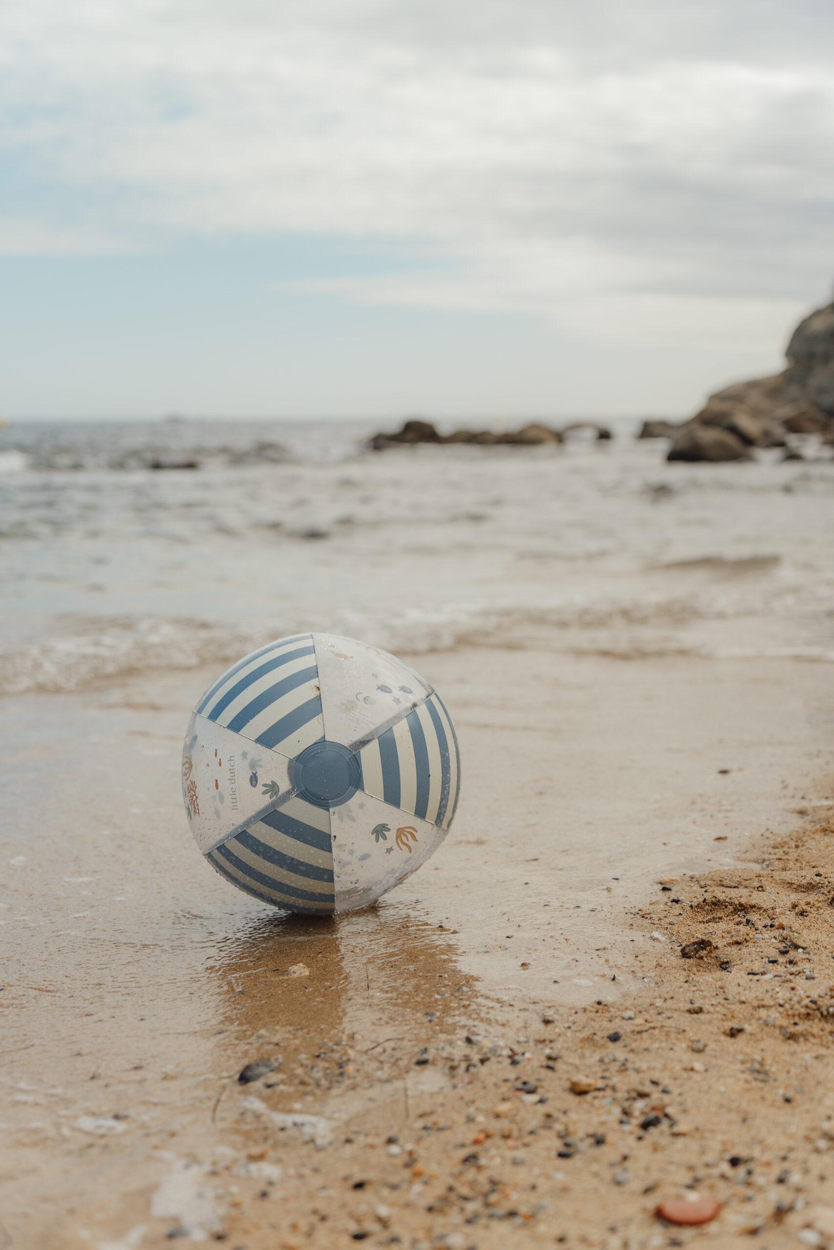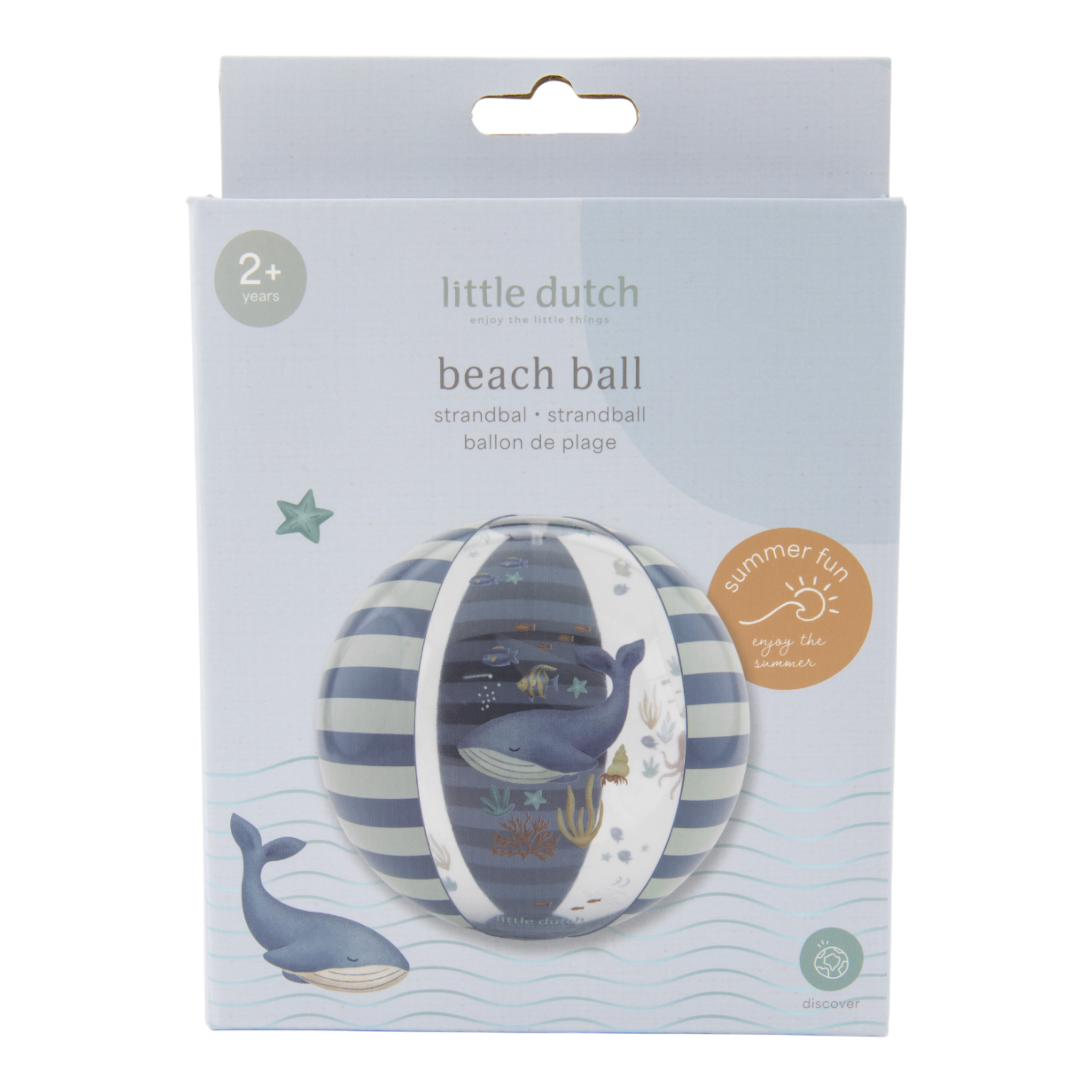 Le ballon de plage Little Dutch Ocean world bleu décor baleine et fonds sous marins permet de s’amuser sans fin à la plage ou dans la piscine