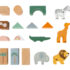 - Mélange de blocs de construction colorés et naturels, de 5 figurines d’animaux et des blocs avec des motifs de safari