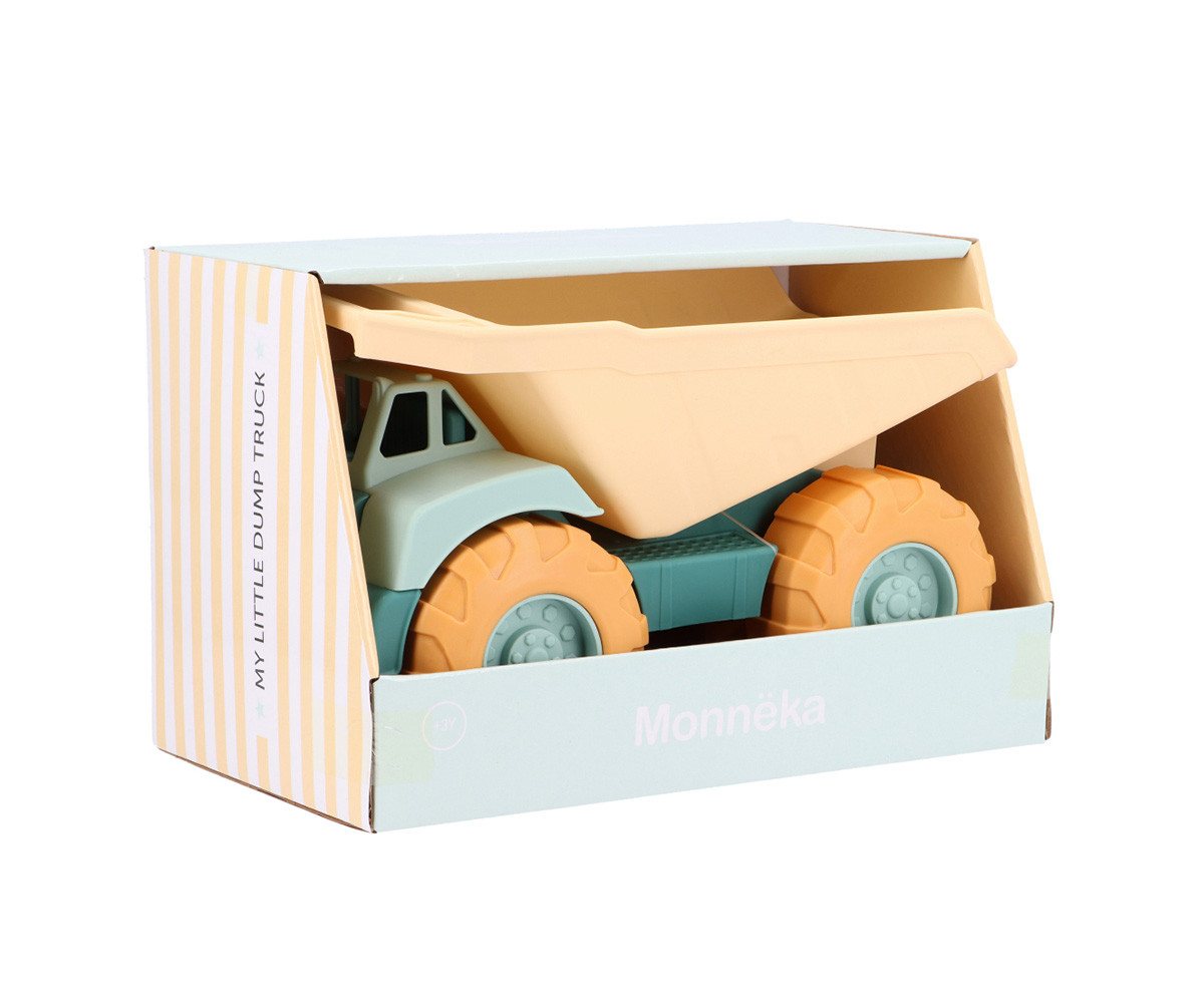 Très joli camion benne vert de Monnëka qui sera le compagnon idéal pour les aventures estivales de votre enfant.