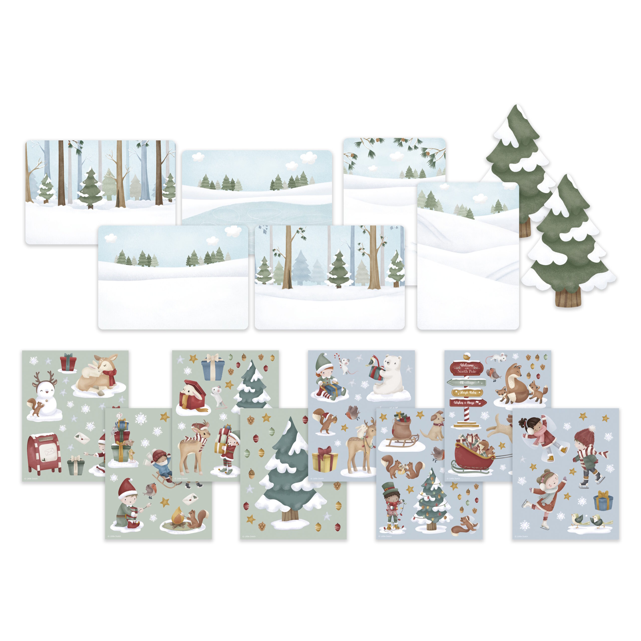 Ce livret d’autocollants très festif contient plus de 150 autocollants de Noël ( notamment sapins scintillants, rennes joyeux et bonhommes de neige ….)et 8 cartes de Noël à décorer.