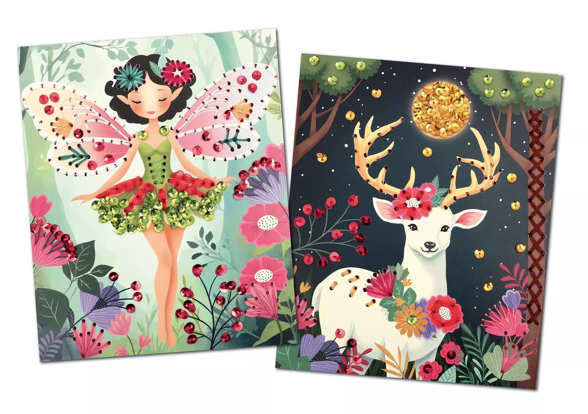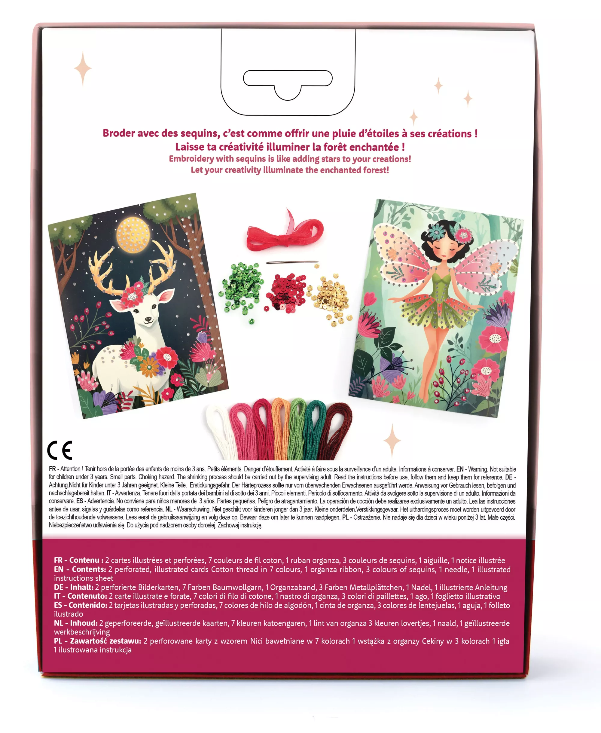 Plongez dans un monde féérique avec ce kit de cartes à broder aux illustrations magiques de fée et de biches !