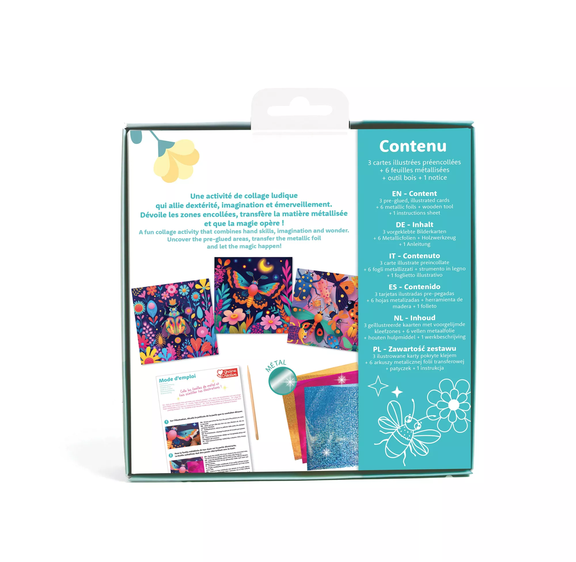 Plongez dans le monde étincelant et fascinant de la créativité avec ce coffret de 3 cartes à métalliser insectes aux couleurs vibrantes !