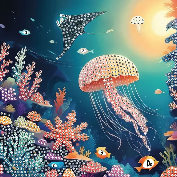 Plongez dans le monde étincelant et fascinant de la créativité avec ce coffret de peinture diamant représentant des créatures marines!