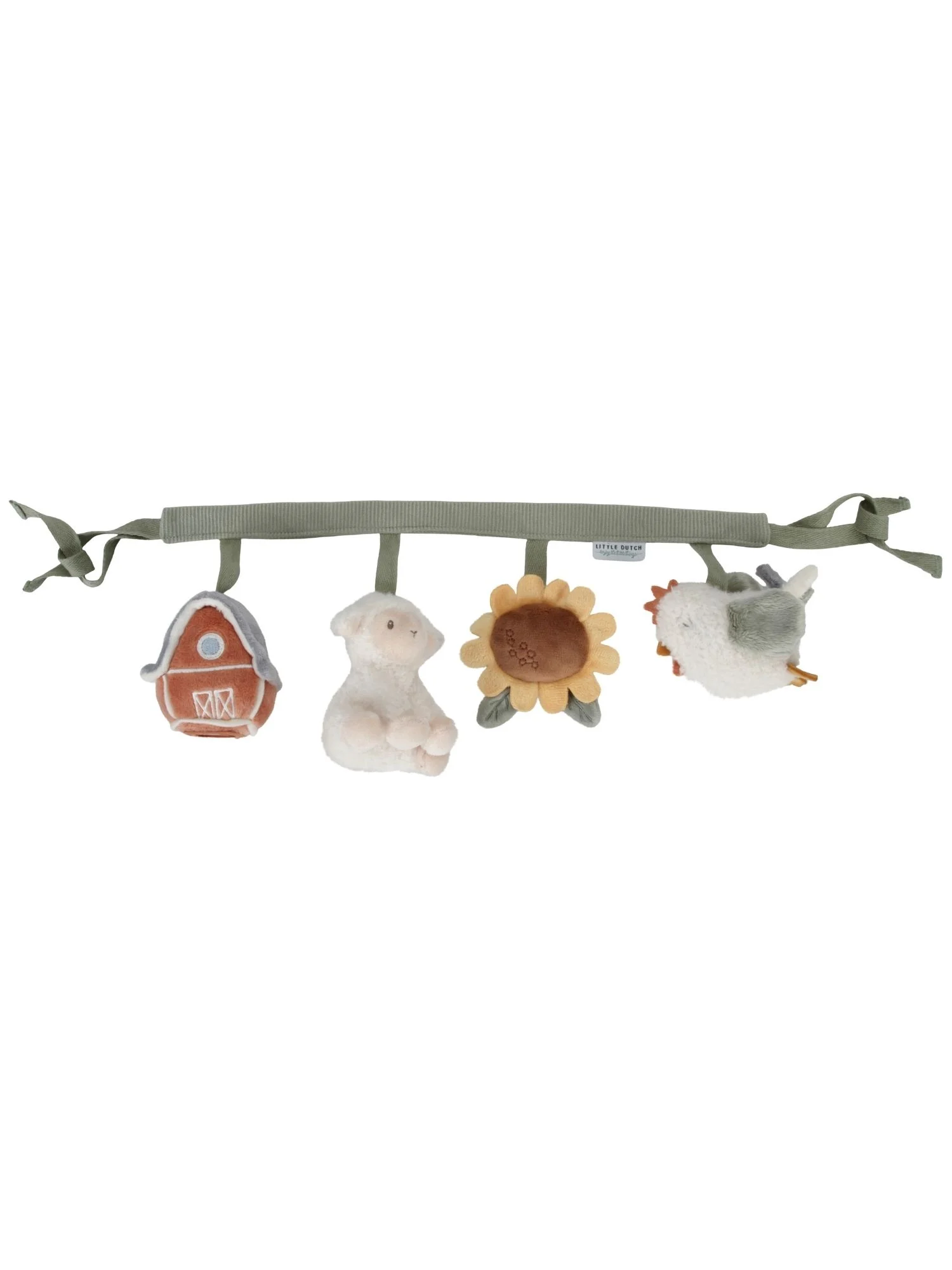 Ce jouet avec des amis de la ferme est facile à fixer à un siège auto ou une poussette et offre beaucoup de jeu et de divertissement en déplacement avec des jouets qui font du bruit, ont un miroir, couinent et froissent.