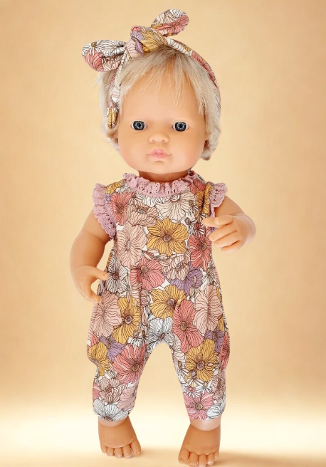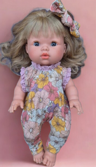 Cette combinaison pourra convenir aux poupées et poupons de 32 à 38 cm, les poupées présentées ici sont une mini colettos 34 cm et une Miniland 38 cm.