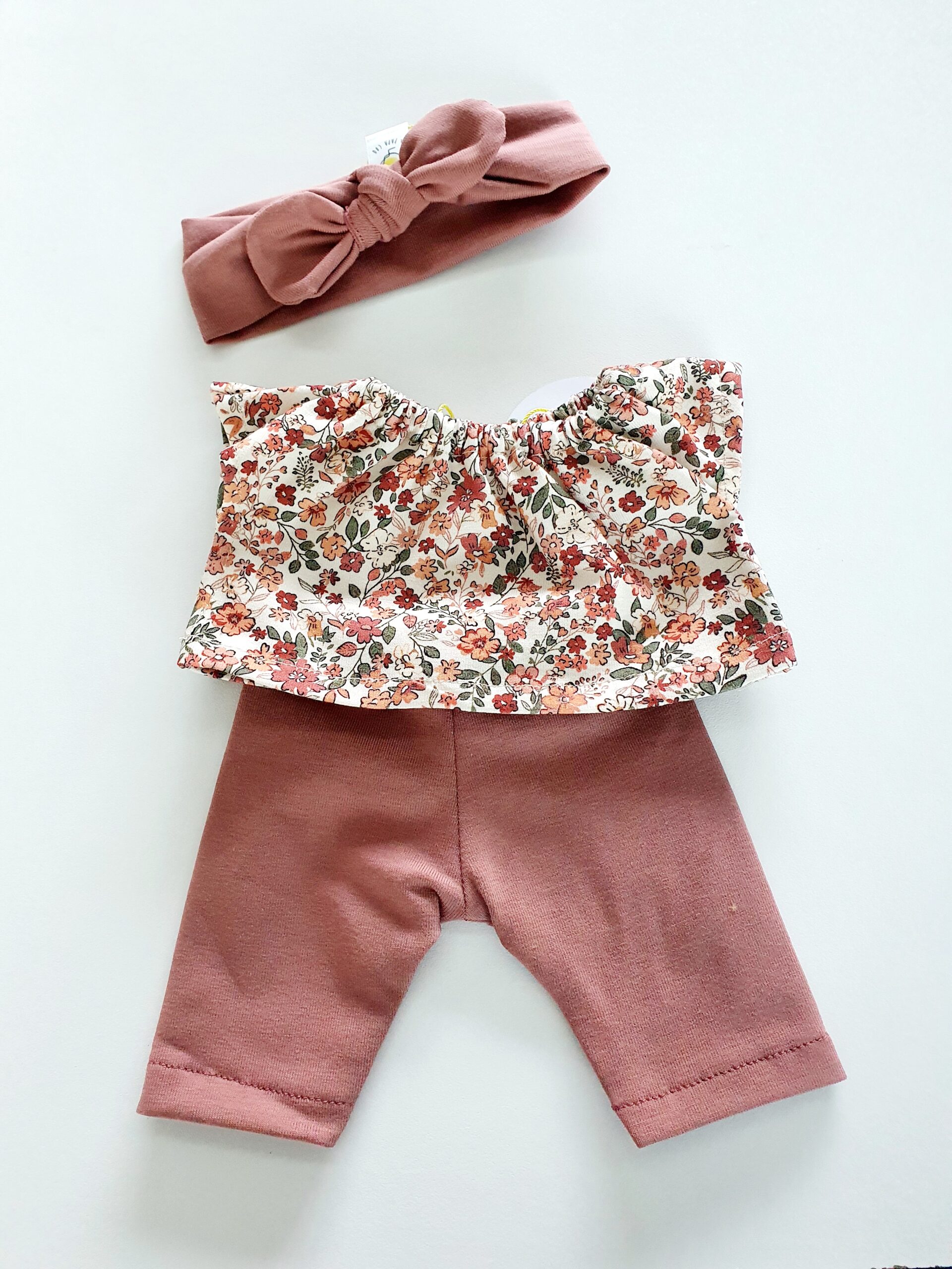 Ensemble Tee-Shirt Legging Fleur Rose Argile avec bandeau 34/38 cm