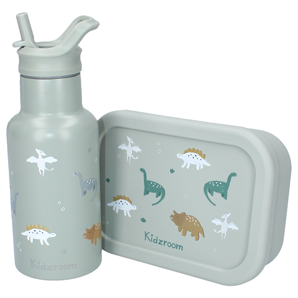 Ce magnifique gourde isotherme 350 ml verte à imprimé dinos est parfaite pour toutes les aventures !