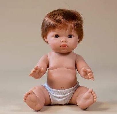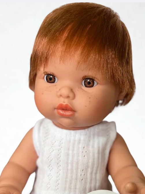 Jasper est un adorable poupon aux cheveux roux et aux yeux bruns.