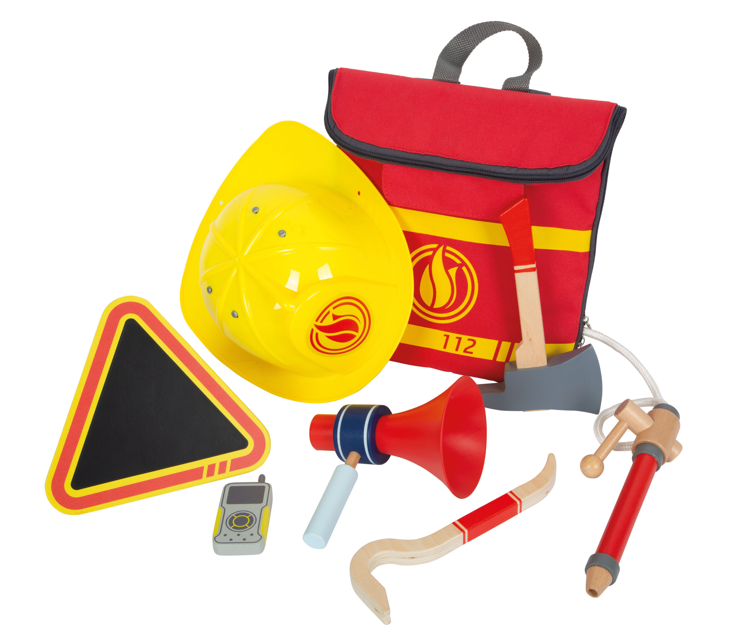- sac à dos de pompier réaliste en couleurs de signalisation avec sangles réglables et équipement de pompier en bois robuste