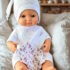 Adorable ensemble de 3 pièces pour bien faire dormir les poupées comprenant 1 pyjama, 1 bonnet et 1 doudou lapin de couleur blanche.