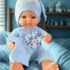 Adorable ensemble de 3 pièces pour bien faire dormir les poupées comprenant 1 pyjama, 1 bonnet et 1 doudou lapin de couleur bleue .