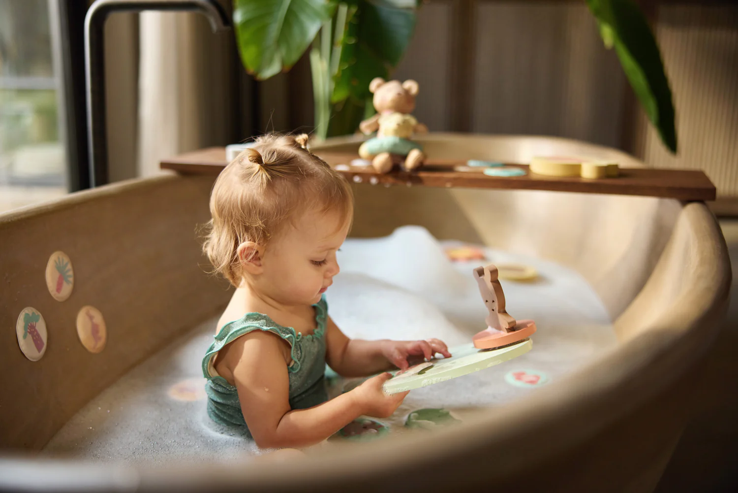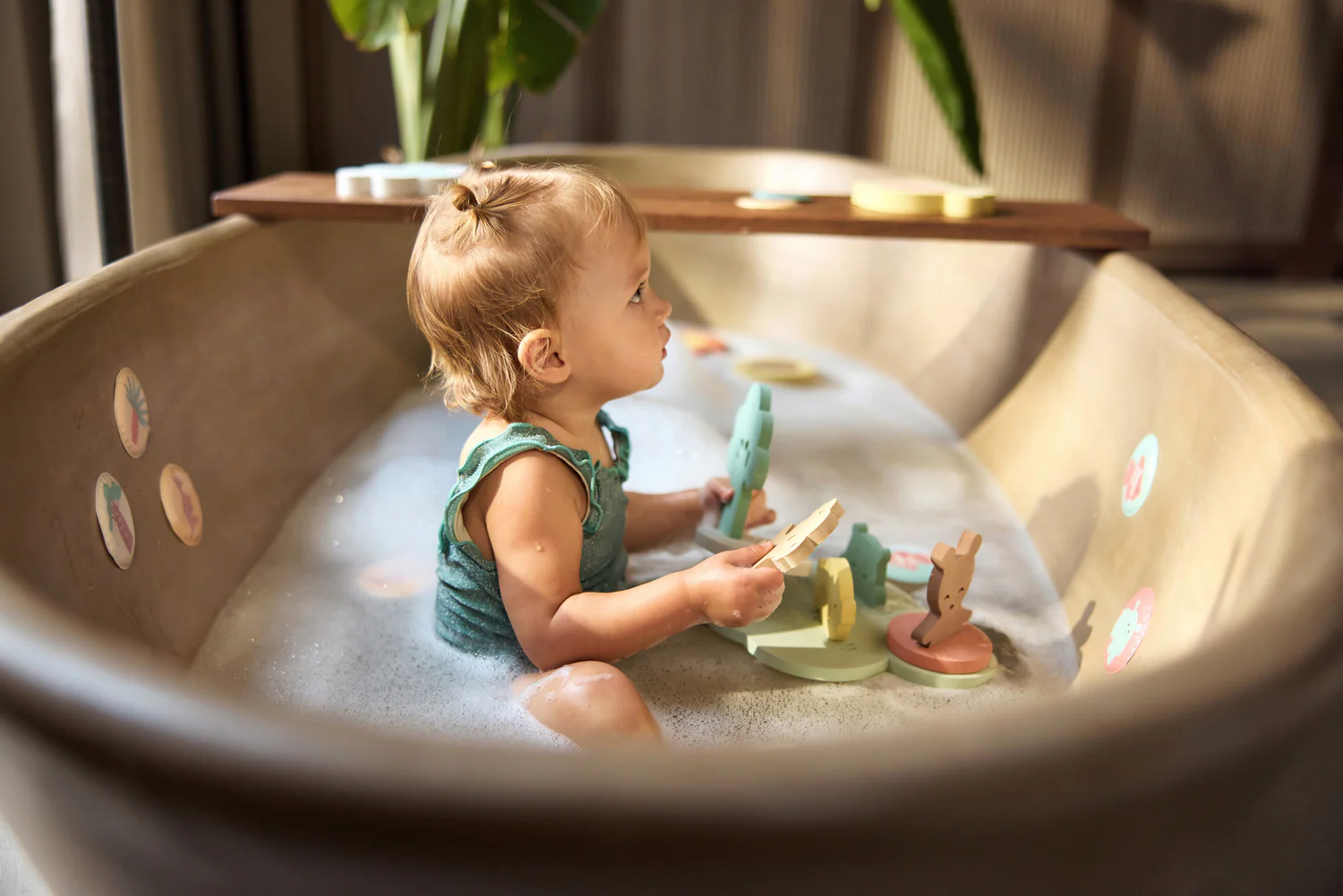 - Ainsi, votre petit peut créer à chaque bain un nouveau décor pour s’amuser.