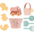 Très joli set de 9 jouets de plage rose, bleu et jaune pour jouer dans le sable et réaliser de fantastiques constructions