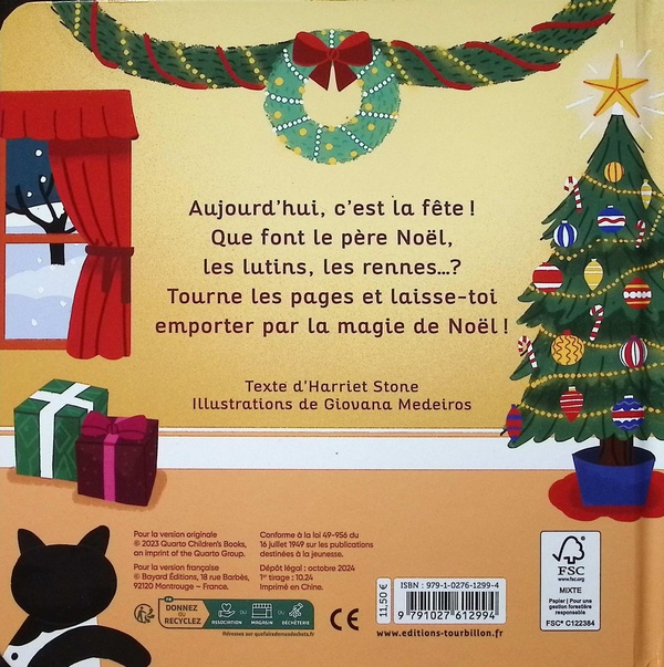 Des rabats astucieux qui créent la surprise : quand le rabat est fermé, on voit une maison se détacher en ombre dans l’obscurité et le calme de la nuit – Quand on ouvre le rabat et qu’on entre dans la maison, la lumière est allumée et c’est le bazar!