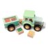 Le set comprend un tracteur et un fermier avec une remorque amovible remplie de légumes.